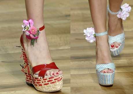 Una de ellas es Moschino, que presenta sandalias de todo tipo, con tacones altos, planas, con muchas tiras de aire marinero, están también las de efecto trampantojo, que crean la ilusión de ver el pie desnudo, muy originales de la marca Chloe. Dior y John Galliano se lucen con sus bellos modelos de alpargatas en estilo rural, que se han convertido en perfectos stilettos.