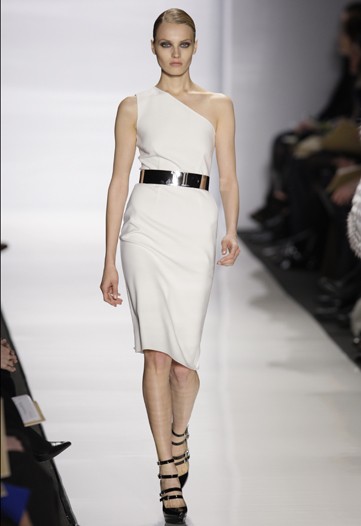 Mis favoritos son los que le apuestan a los cortes básicos, las telas no muy gruesas, sin estampados, con colores neutros. El cinturón metálico, a la altura de la cintura (y no de la cadera) es un acierto, lo mismo que los zapatos altos y adornados con correas.