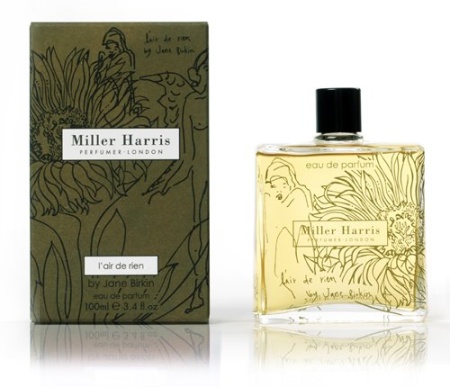 La legendaria actriz, cantante, modelo y humanitaria Jane Birkin fue la inspiración para Lyn Harris de Miller Harris London para crear L’air de Rien o el Aire de Nada, que todas las mujeres podrán ponerse como «un velo sobre el cuerpo de una persona», según propias palabras de la compañía. Esta fragancia es una mezcla de ámbar, vainilla, roble, musgo y almizcle.