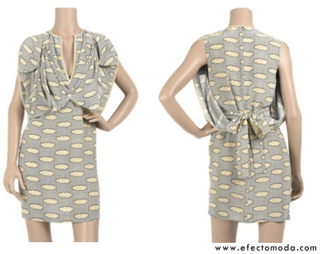 La diseñadora tomó una impresión de un estampado de nubes y basó su exclusiva nueva colección en ella, poniéndola sobre un vestido hecho de seda con las mangas anchas, y con un profundo escote en V en la parte delantera que tiene un excelente toque veraniego para esta temporada que ya se nos viene. Otras piezas incluyen una camiseta de algodón orgánico, unas sandalias de plataforma y con cordones para amarrar a las piernas y un bolso, todo con el diseño de las nubes sobre ellas.