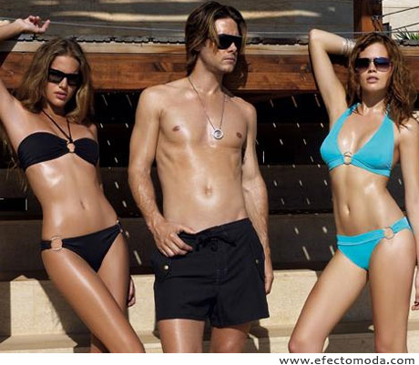La pieza inferior de los primeros dos bañadores, el segundo de la imagen anterior y el de color blanco abajo, cuentan con un par de tirantes en cada costado que se anudan a la cadera, propicios para las piezas pequeñas.