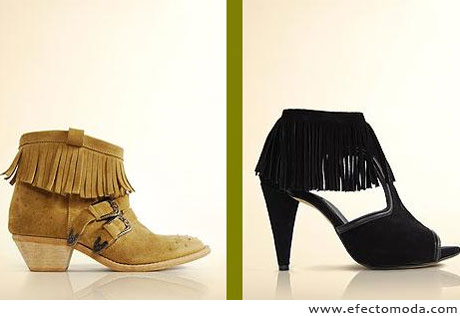 En los zapatos, por su parte, destacaran los flecos (esas tiritas del borde superior) y la forma de bota texana en color beige, mostaza, caqui y café.