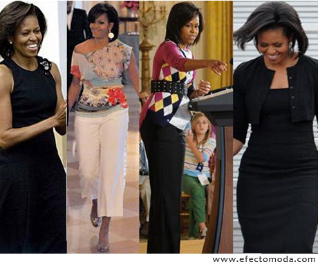 Sin embargo, hay características que al parecer determinan los gustos que tiene Michelle Obama en cuanto a su forma de vestir: blusas sin manga, vestidos debajo de la rodilla, zapatos planos que terminan en punta y cinturones colocados por encima de la chaqueta o saco.