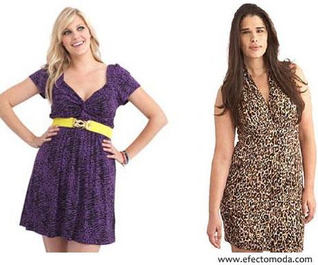 En el caso de los vestidos, con mucha más razón es oportuno ajustar al cuerpo alguna parte del diseño. El segundo se fundamenta en esta idea, y su estampado se explica a que la imitación de piel de leopardo no hace evidentes las imperfecciones del cuerpo (las «llantitas», por ejemplo). El vestido morado es igualmente jaspeado, pero a éste por ser holgado, le basta con emplear un cinturón, además de que para su escote en «v» son oportunas las mangas, aun cuando son cortas.