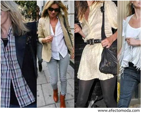 - Camisas tipo túnica, holgadas y cómodas. Parece que Kate Moss valora por sobe todo la comodidad. Pocas veces se le ha capturado usando cotidianamente blusas demasiado ajustadas o de lycra.