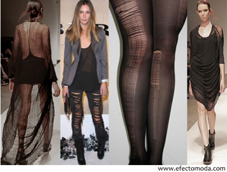 Mientras tanto la diseñadora, estilista y modelo Erin Wasson, se ha dejado ver en varias ocasiones vistiendo leggins, jeans y medias veladas o pantimedias rotas en diferentes lanzamientos y espectáculos de moda, mostrando así que esta tendencia se está imponiendo más que nunca entre diseñadores, modelos y celebridades.