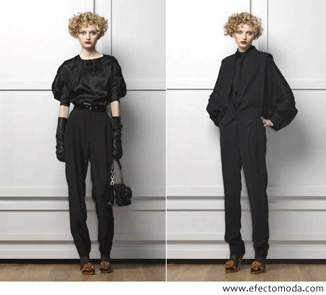 Como se ha mencionado arriba, la ropa ajustada no es tendencia de esta firma. Lo menos ceñido al cuerpo que se puede encontrar es el resultado que se logra, por ejemplo, con el cinturón de la primera imagen, y el segundo saco de ésta última. Sin embargo, en él podemos notar que el corte no pretende remarcar el talle.