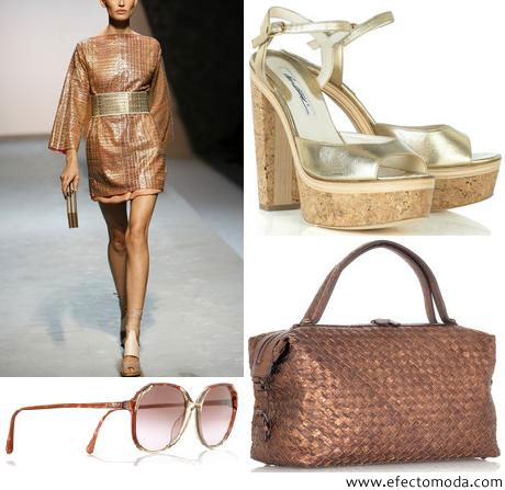 Si la primavera irrumpió con colores brillantes y emotivos, el verano es más propicio para incluir tonos neutros y un tanto más sobrios. No por eso está exento de ofrecer efectos metálicos y brillantes en sus telas, plataformas y joyería. Un ejemplo de ello son los colores café cobrizos, cuyo resplandor puede darte atractivas oportunidades de armar tantos atuendos como quieras.
