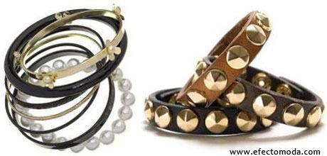 El primero es todo un set de brazaletes de Miss Selfridge, color negro acompañados por un par más de perlas y color dorado con margaritas, respectivamente. Su precio es de 6 libras.