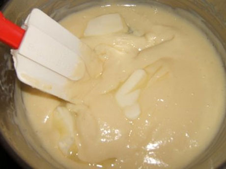 Posteriormente a este batido le agregaremos una taza de la leche que tenemos bien caliente mezclando enérgicamente y con cuidado, porque las yemas pueden coagular en presencia del calor. Una vez concluido este paso, volvamos esta preparación al resto de la leche que tenemos en el fuego, mínimo, y seguimos mezclando, removiendo constantemente sobre el fuego y evitando que la misma entre en ebullición.
