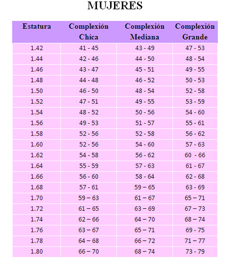 Pero aunque la tabla sirve de referencia para guiarnos en dicho sentido no es para nada una regla inalterable, el peso está sujeto también a las condiciones de salud de cada mujer, a la edad, al entorno y la vida que desarrollo por ello, aunque la tabla, insistimos, es referente, será el médico el único que puede decidir cuál es ese punto de equilibrio que te permite lucir estupenda pero también estar saludable en todo aspecto.
