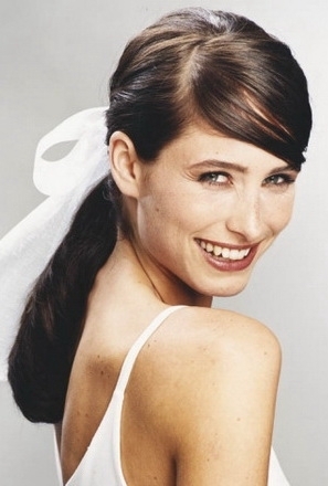 En la imagen siguiente la clásica y fácil coleta cobra otro estilismo con un lazo atado, además de ser apenas semirecogido, es fácil de hacer y le queda bien a todas.