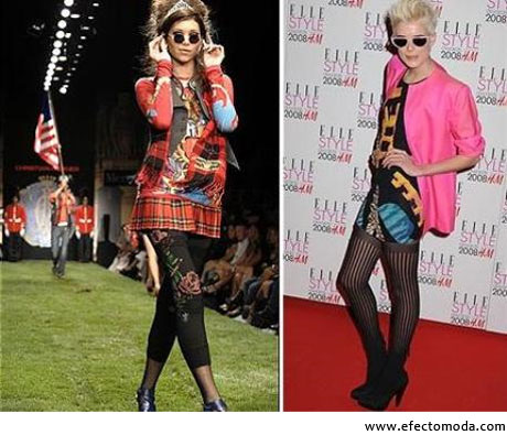 La combinación dicromática de los colores rosa chicle (o fosforecente) y negro, las leggings largas, los tacones altos de aguja y el estampado de flores rojas proyectados en diseños de cortes y medidas atrevidos son bandera de la moda punk.