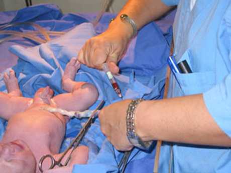 Después de dar a luz a tu bebé, ya sea por parto natural o con cesárea, y el cordón ha sido sujetado y cortado, el doctor, matrona o enfermera inserta una aguja en la vena umbilical en la parte del cordón que aún se encuentra pegado a la placenta. La aguja no se acerca ni un poco al recién nacido.