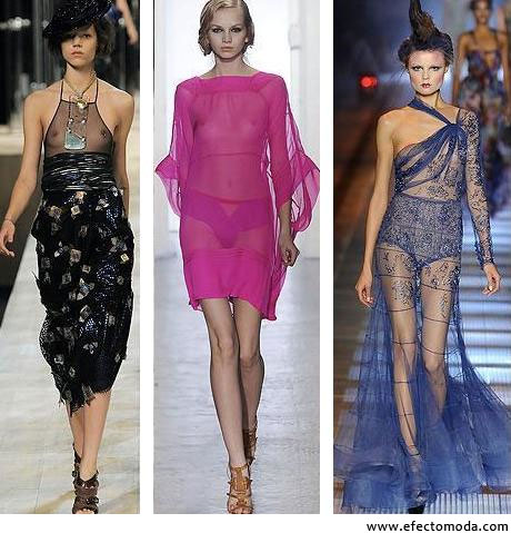 Prendas cuyas telas translúcidas permitan ver más allá del contorno del cuerpo, más que sugerentes, son explicitas, por lo que corren el riesgo de caer en la hortera.