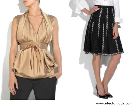 En cuanto a las faldas es mejor que escojas aquellas que quedan a la cintura y no de las que se ponen en la cadera. Escoge las faldas en forma de A o aquellas rectas que terminan justo encima de la rodilla. Evita las faldas que tengan mucha tela, porque estas harán que tengas más volumen en tus caderas y en el trasero. También debes tener cuidado con las faldas muy largas o las plisadas, además es mejor que mantengas las impresiones y las texturas en lo más mínimo posible.