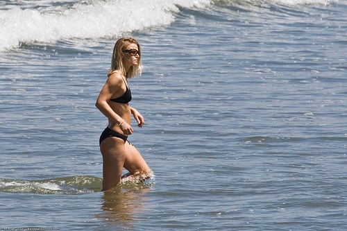 – Míralo afuera: Esos colores fluorescentes pueden realmente verse mal con las luces de las tiendas. Pero el test real de cómo se ve de bien un bañador es en la luz natural. Saca tus piezas y vístelas en la privacidad de tu propia habitación bien iluminada con la luz natural o en el patio, para que veas el efecto verdadero. Y aprovechando que estás haciendo pruebas, asegúrate que cuando esté mojado no se vea transparente y acabes haciendo una exhibición en la playa, a no ser que eso sea lo que quieres.