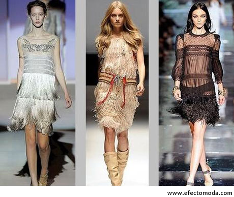 Si la prenda tiene varias capas de flecos, o está compuesta en su totalidad por ellos, lo más propicio es dejar que las piernas luzcan más con un par de stilettos que, además de estilizar el cuerpo y remarcar las pantorrillas, favorecen a destacar más el movimiento de los flecos y no hacen que luzcas demasiado ataviada. Un ejemplo de ello es el primer atuendo.