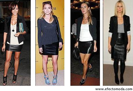 La idea es coordinar falda, chaqueta o jersey, calzado y maquillaje en color negro. La camiseta, blusa o minivestido ha de ser en un color mucho más claro.