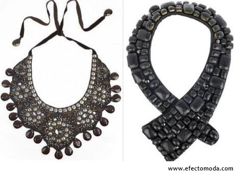 Cuando se viste una blusa especialmente escotada, es una buena oportunidad de usar un collar grueso, frondoso, y/o conformado por formas y piezas intrincadas y de diversa textura.