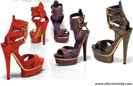 Después de arremolinar los pasos de las mujeres que los portan con un par de ostentosos tacones ligeramente afilados pero extravagantemente altos, y una plataforma que parece pretende ayudar un poco a la estabilidad del pie, cada uno se sujeta al pie por un trío de correas cuya hebilla metálica decora y suma brillo al calzado.