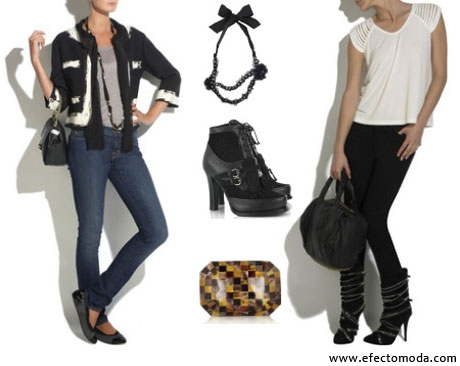 En cuanto a los accesorios, puedes acompañar esta apariencia con un collar negro como este de Lanvin que es de perlas de vidrio y que termina en la parte de atrás es un lazo de cinta, unas botas un poco más arriba del tobillo como las de la foto de Tabitha Simmons que son de gamuza y cuero y que tiene un tacón de aproximadamente de diez centímetros y para acabar un bolso de mano cuadrado como este de Celestina que te da un buen toque con su diseño único.