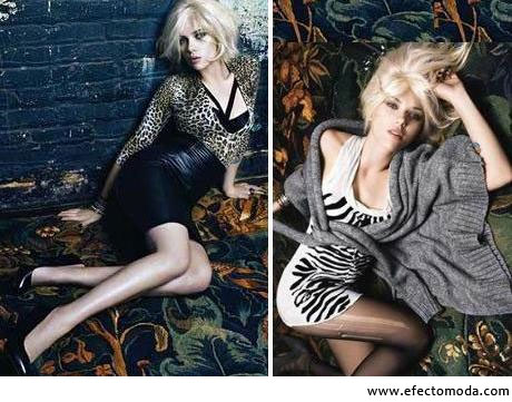 De melena rubia y alborotada, tacones, minivestidos y prendas entalladas, se le ve posar para las fotografías de la Colección Otoño / Invierno 2009 con un estilo sensual, más salvaje que nunca, han dicho algunos sitios web.