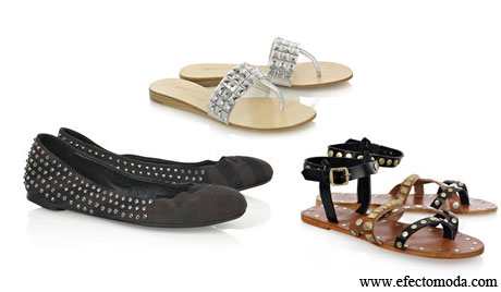 Ya hemos visto que en sandalias de tiras las tachuelas metálicas arrasaron, teniendo por polémico lanzamiento el de las sandalias Balmain, por más de una marca clonadas.