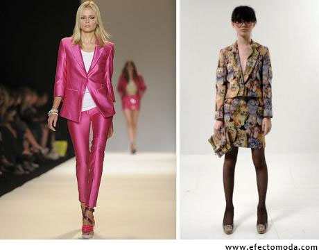Los trajes sastre lisos pueden resultar más vanguardistas y juveniles, sobretodo si están hecho por telas satinadas y con un corte ajustado, como el diseño rosa de la imagen.