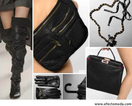 Algo más vistoso puede ser un par de botas, un bolso de hombro o un maletín. Las primeras se recomiendan extra largas y con minifalda. En caso de acompañarse con abrigos largos, es preferible que se lleve abierto (con cremallera abajo o botones abiertos) para poder lucirlas.