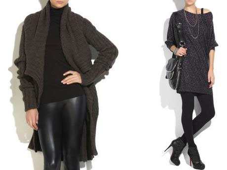 En aras de lucir elegante, la prenda top debajo del suéter o cardigan puede tener una longitud que cubra todo el vientre, ya que si se lleva una camiseta corta que deje descubierto el ombligo, se corre el riesgo de emular negativamente un estilo de la moda de los años 80 que quizá no coincida con el resto de las piezas del outfit, o simplemente, se puede mostrar la cinta elástica de las leggings sin que así lo desees.
