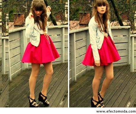 Las faldas amponas son favorables para chicas muy delgadas que deseen marcar su cintura sin lucir demasiado apretujadas por las prendas, y es conveniente que la camiseta o blusa se lleva dentro de pretina.