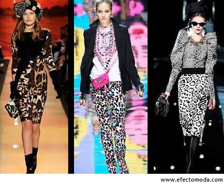 Algunos de los diseños que han tomado esta tendencia son los expuestos en la fotografía. El de enmedio corresponde a la firma Blumarine (fundada en 1952 por Hubert de Givenchy), leggings que juegan con tenues multicolor sin mermar las manchas negras del clásico print de leopardo.