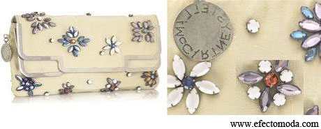 Femenino y en color suave, este bolso de mano responde a un estilo joyero que da brillo al outfit y que puede acentuar un estilo elegante y sofisticado, aun cuando las incrustaciones de pedrería son pequeñas.