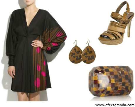 Este vestido es muy fácil de combinar con accesorios y calzado de colores marrones y amarillos, por su toque marrón en un lado, por eso te recomiendo las sandalias de Kellers que tienen diferentes correas que le da una gran belleza y que tienen el tamaño de tacón y de plataforma adecuados para hacer que tus piernas se vean más largas y estilizadas y te veas más alta.