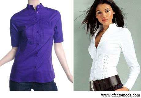 Algunos diseños de camisas formales, como las que se requieren para outfits de oficina, sustituyen con el cuello mao el cuello clásico que deja caer una solapa tras el doblez acostumbrado de la tira de tela (lo que se llama «cuello camisado«, y mantiene el resto de la prenda con la estructura y forma cotidiana, como en el diseño de la izquierda en la imagen.