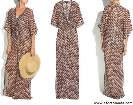 Con un estampado de hojas marrones, rojizas y blanquecinas, este vestido, andalusia maxi kaftan por Missoni, por ser holgado y sin textiles elásticos, puede resultar una gran alternativa de comodidad.
