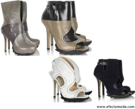 Zapatos de tacón alto y cuya altura llega al tobillo, muchos de ellos tienen cortes que dejan asomarse los dedos del pie, como los que corresponden a un estilo peep-toe, así como el dorso del pie y sus costados, como en los tres últimos modelos que se aprecian en la fotografía.