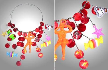 Se trata de una pieza de joyería que pertenece al peculiar de las figuras acrílicas y plásticas que se prenden de una cadena base hecha de metal. El nombre de este collar es Pet Rock ShopSweets and Stars Totally Kitsch, tiene un precio de 15 libras y está a la venta en la tienda online de CX London.