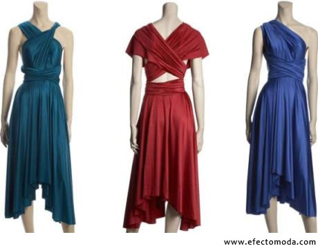 Este es el caso de los vestidos wrap que vemos en la imagen, el estilo es más innovador aun: piezas convertibles que algunos consideran como multiusos gracias a las múltiples formas que se puede dar al escote. Para estos se recomienda stilettos de correa o peep-toe.