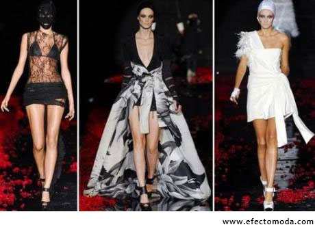 Tomando a los colores blanco y negro como base, los diseños tienden más bien a un estilo nocturno y elegante. El encaje y las telas rígidas tienen lugar importante.