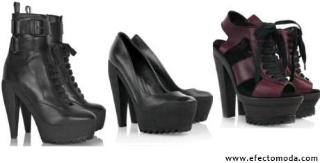 Este estilo de botines y zapato de tacón, respectivamente, son ideales para looks agresivos y de tendencia industrial y andrógina.