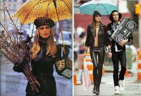 Una de las piezas necesarias para salir es una buena sombrilla: conviértela en una pieza más de tu look. Si vistes colores vivos, procura que sea un color mate que combine. Por ejemplo, si llevas camiseta amarilla o anaranjada, una sombrilla de animal print clásico como la que sostiene Claudia Schiffer. Si por el contrario, tus prendas son pálidas u oscuras, que sea llamativa y alegre.