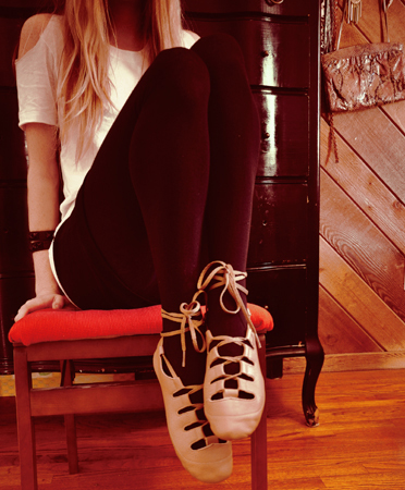 El modelo de zapatos de la foto se llama Capezio Lace Up Dance Shoe. Está confeccionado en cuero suave y muy durable que brinda comodidad al pie. El lazo superior, además de recordarnos un poco las zapatillas de ballet, proporciona ajuste y movilidad a un tiempo, de manera que bailar con este par debe ser una experiencia por demás interesante.