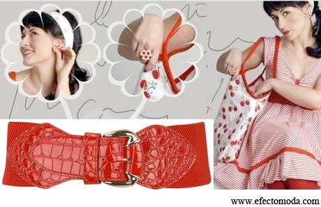 Este es el caso, el estilo del atuendo que se aprecia en la fotografía, es un tanto inocente. La longitud del vestido es recatada, pero sobretodo los accesorios tienden a lo infantil: estampado de cerezas sobre el fondo blanco, aretes motedos y headband ancha color blanco.
