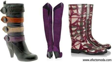 Cuando se es tímida, las botas ajustadas y de piso pueden ser frecuentes, en colores discretos o color negro con texturas como la de entramado, como la mostrada en el post de Bottega Veneta. Si no se es tímida, pero sí sencilla y con tendencia a lo indie, un par de botas de plástico como las de la derecha en la fotografía pueden identificarte, ya que no son ostentosas en lo que se refiere al tacón, pero su estampado es moderno sin ser demasiado llamativo.