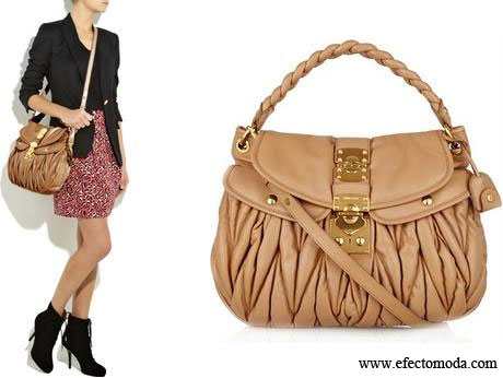 Se trata de un diseño de la firma Miu Miu, que tiene el principal atractivo de tener una textura rugosa y simétrica al mismo tiempo. Tiene dos asas, una corta para llevarla bajo el brazo, y la larga que permite llevarla cruzada cargando en un hombro.
