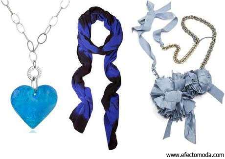 Femenino y moderno, podemos encontrar el color azul en accesorios que suelen ser metálicos como collares, aretes y dijes, para lograr un look fashion.