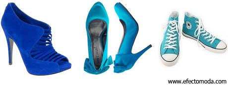 Los zapatos que vemos en la fotografía van de un estilo a otro, con la característica cromática común que nos interesa en este post. El azul es un color que comúnmente encontramos sin problema en los diseños de calzado que nos gustan, lo cual se debe a diversas razones. Es un color que se remite fácilmente con lo que es toda una tendencia de moda: la de las piezas de denim.