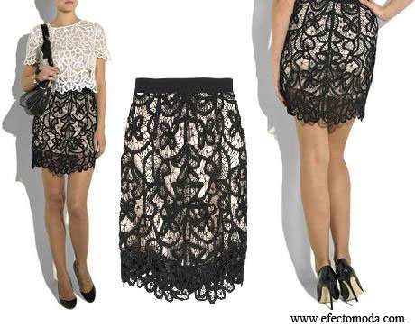 El acompañar esta falda con una blusa que también sea de encaje puede no ser la mejor opción, ya que le restará importancia y protagonismo al diseño Phillip Lim. Recomiendo una prenda top lisa y mucho más sencilla.